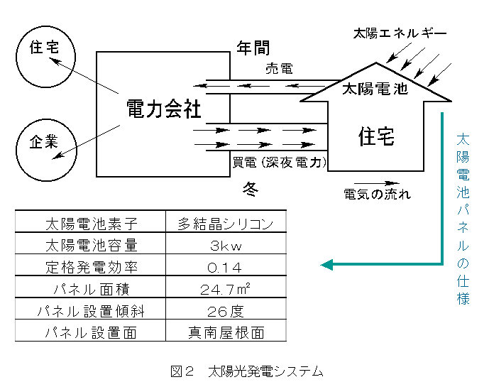 また、太陽光発電システムを有効利用するには、住宅で使用されるエネルギー消費量と太陽光発電量とを比較する必要がある。本研究では東北各県の住宅に太陽光発電システムを導入することによる経済効果、二酸化炭素の排出削減量による環境評価を行い、太陽光発電システムの有効性を検討することを目的としている。
