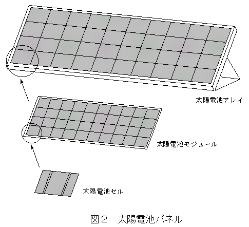太陽電池は太陽からの光エネルギーを電気エネルギーに変換する機能を持つ最小単位となる太陽電池セルが基本となっている。太陽電池セルは約10p角の板状のシリコンにpn接合を形成した半導体の一種である。太陽電池セルはそのままでは発生電圧が低いことから太陽電池セルのままで用いられることはない。